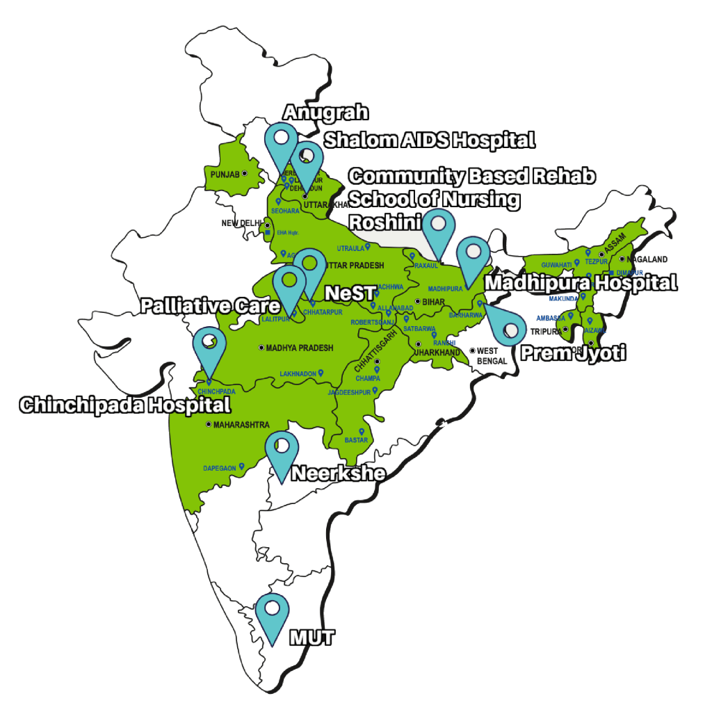 20 hospitals and 42 community health projects serve people in 12 North and North Eastern states of India. The work is primarily in rural areas among poor and marginalized people, many of whom are Dalits.